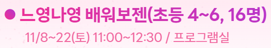 프로그램명 | ▶ 11월 느영나영 배워보젠 |