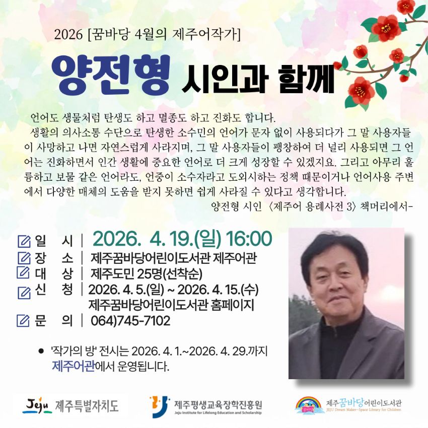 | 프로그램명 | [4월의 제주어작가] 양전형시인과 함께 |