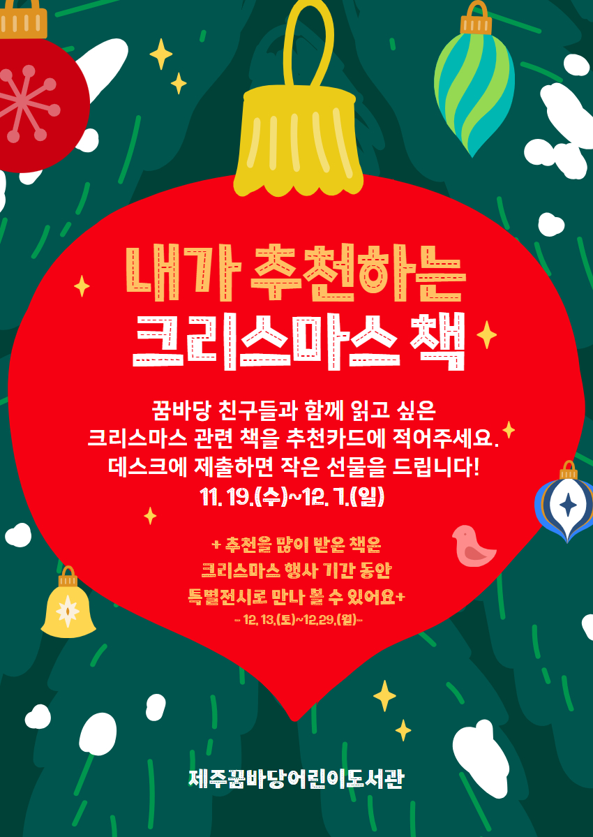 | 제목 | [내가 추천하는 크리스마스 책] 추천카드를 작성해 제출하면 선물 증정 | ||
