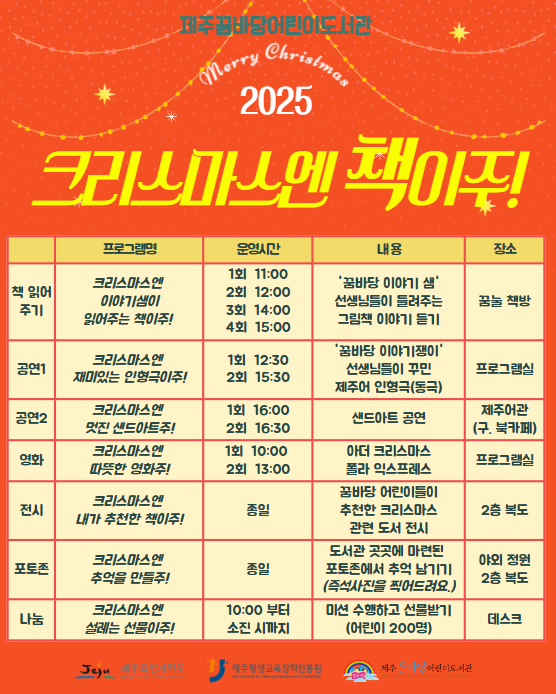 | 제목 | [크리스마스] 크리스마스엔 책이주!! 행사 안내 | ||