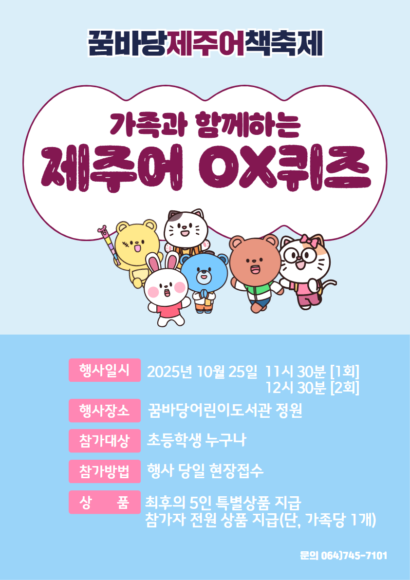 | 제목 | [2025 꿈바당 제주어 책축제] 제주어 OX 퀴즈 | ||