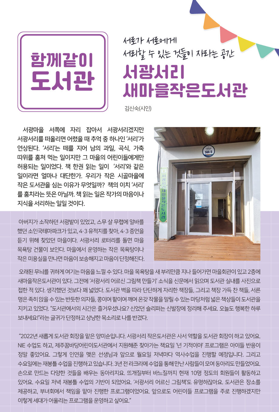| 30 | 2022년 10월 함께같이 도서관 0 | 제주꿈바당어린이도서관 | 2022-10-19 | 2,253 |
