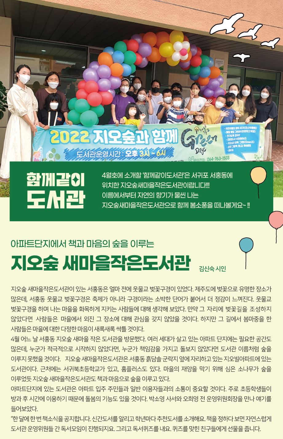 | 25 | 2022년 5월 함께같이 도서관 0 | 제주꿈바당어린이도서관 | 2022-05-13 | 2,580 |