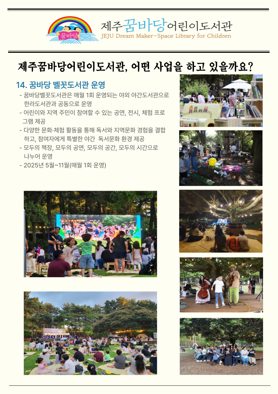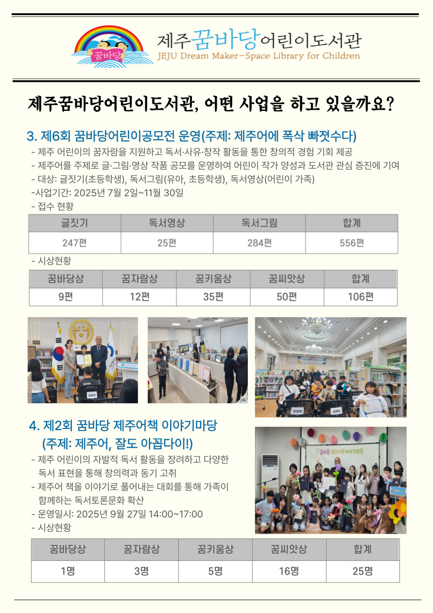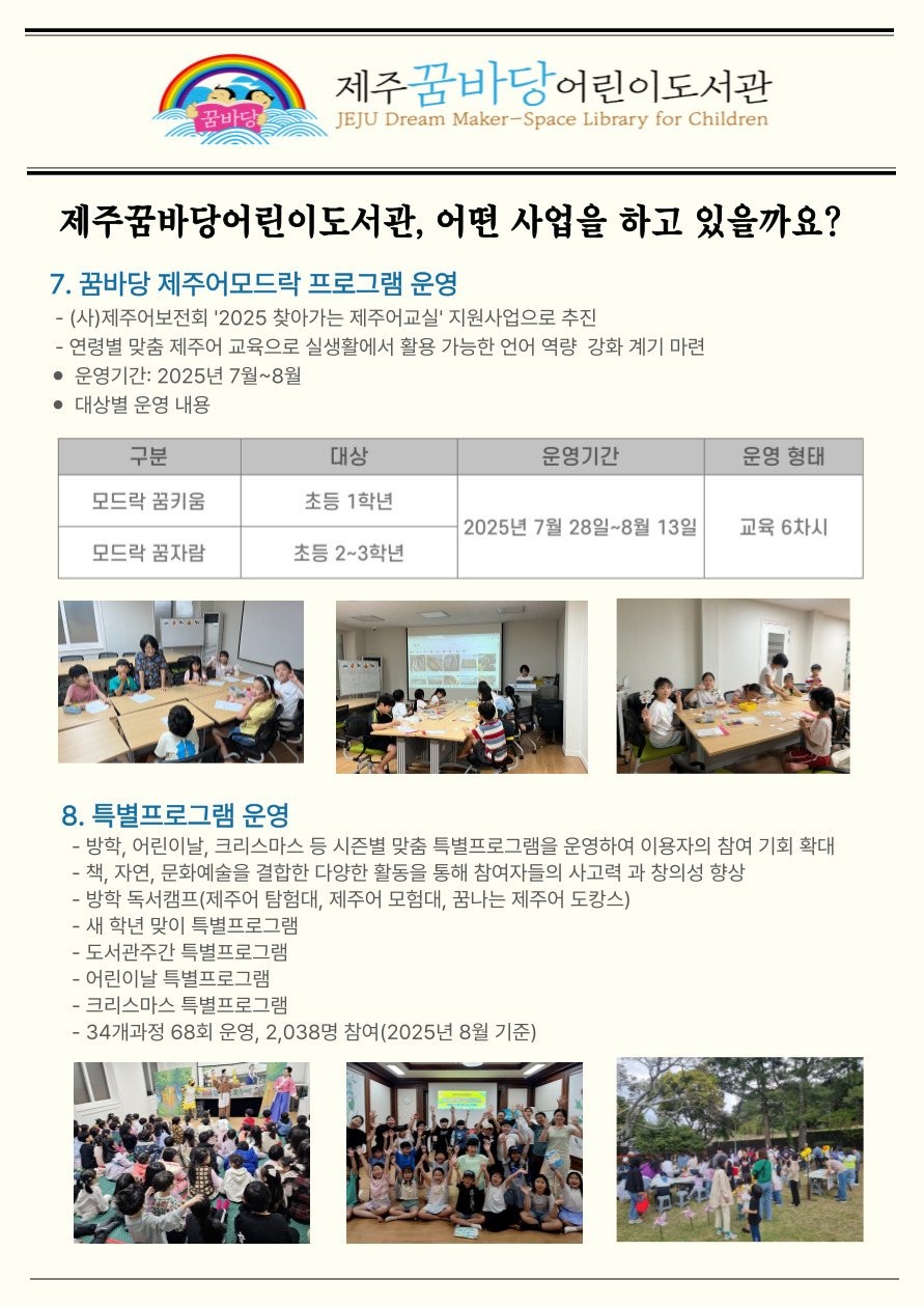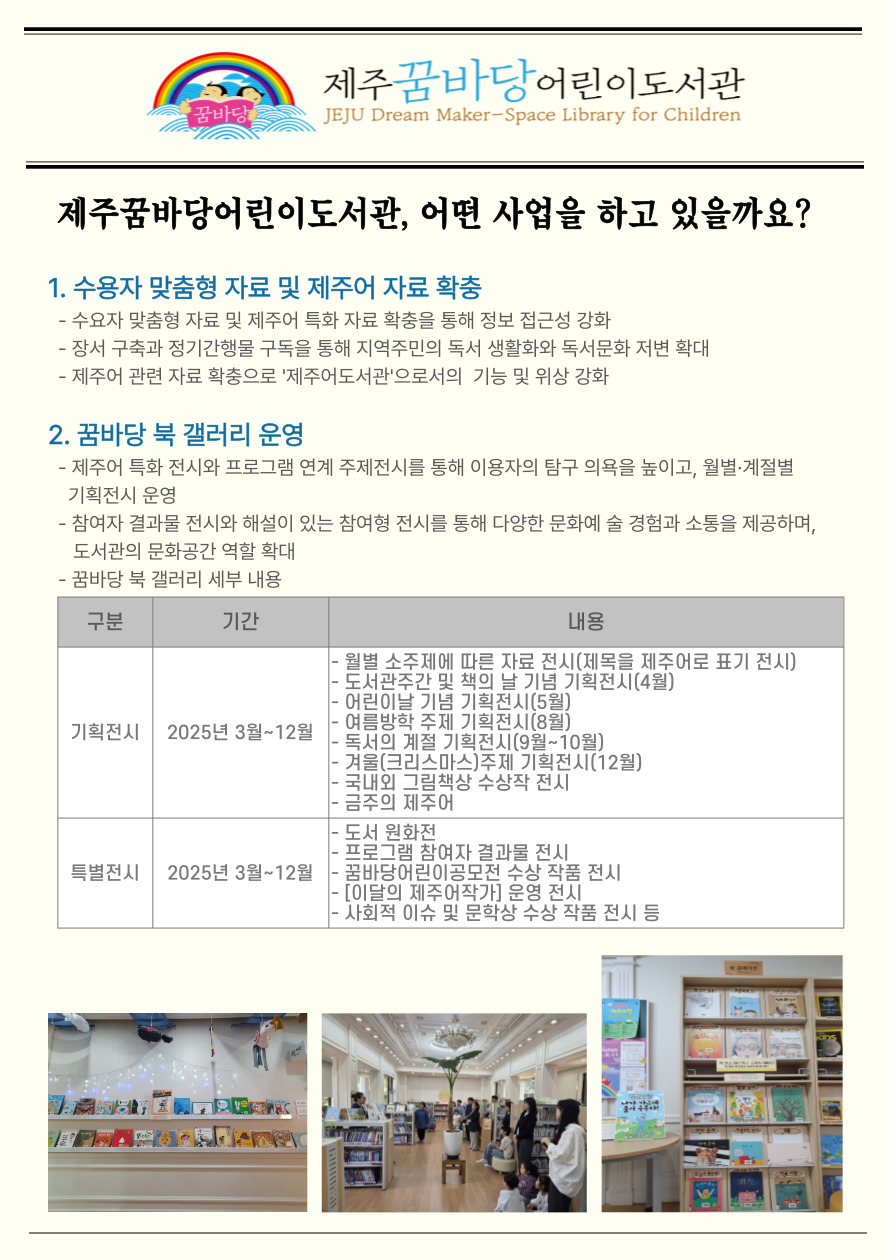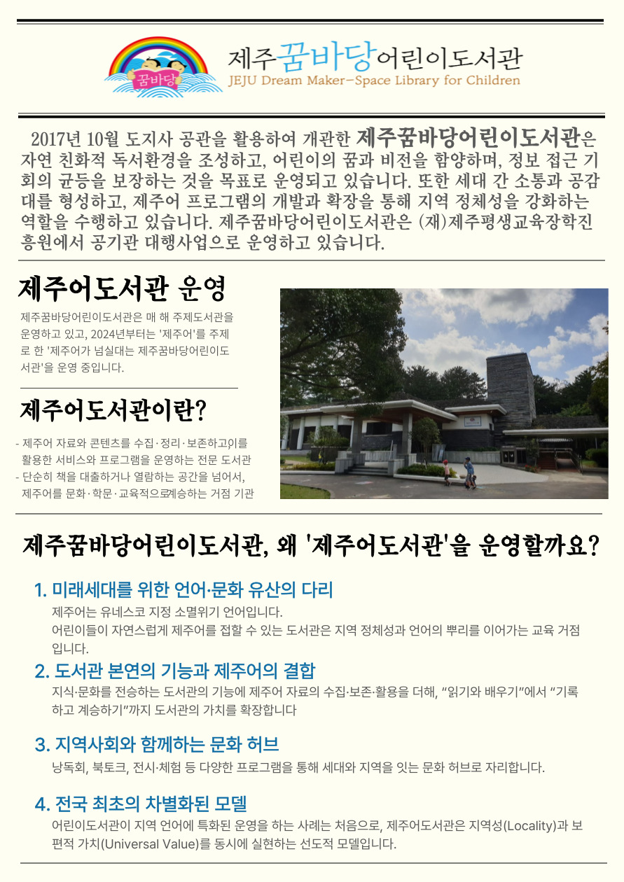 2025년도 제주꿈바당어린이도서관 운영 내용