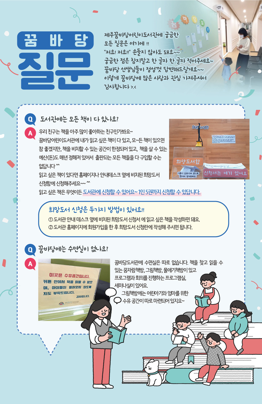 | 25 | 2022년 9월 꿈바당 질문 0 | 제주꿈바당어린이도서관 | 2022-09-15 | 2,492 |