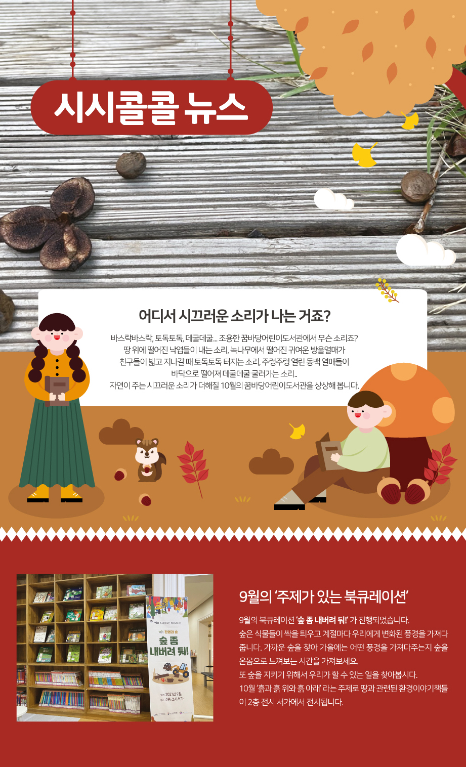 | 22 | 2021년 10월 시시콜콜 뉴스 0 | 제주꿈바당어린이도서관 | 2021-10-28 | 2,912 |