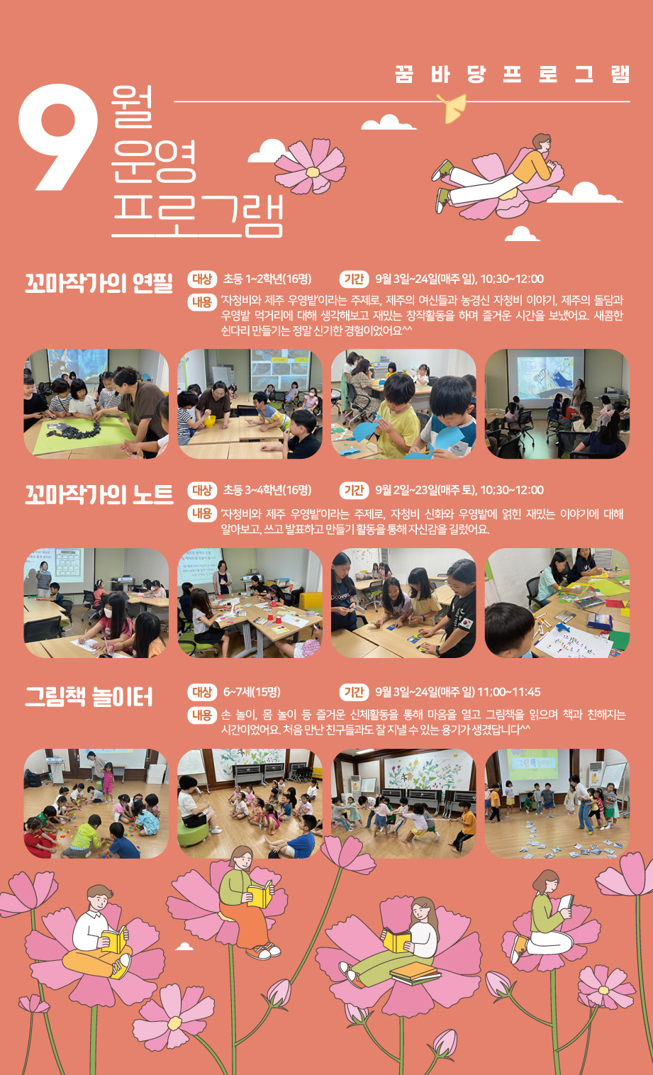 | 21 | 2021년 9월 꿈바당프로그램 0 | 제주꿈바당어린이도서관 | 2021-10-01 | 3,008 |