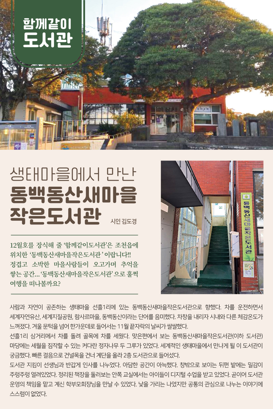 | 32 | 2022년 12월 함께같이 도서관 0 | 제주꿈바당어린이도서관 | 2022-12-16 | 2,168 |